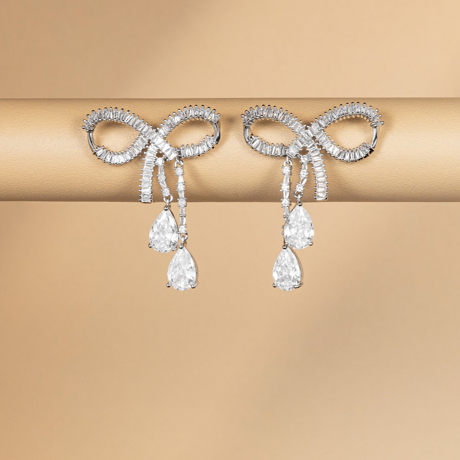 Sparkling bows meet elegant drops in this whimsical yet classy design. The perfect mix of sweet and sophisticated.